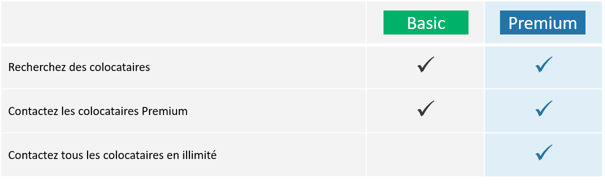 En devenant membre Premium, vous aurez la possibilité de contacter tous les utilisateurs de façon illimitée. Cela signifie que vous serez en mesure de trouver des colocataires plus rapidement et de les contacter avant tout le monde. Et si vous avez une chambre à louer, votre annonce sera accessible à un plus grand nombre de locataires. Non seulement vous trouverez une colocation plus rapidement, mais aussi vous obtiendrez très certainement un meilleur prix.